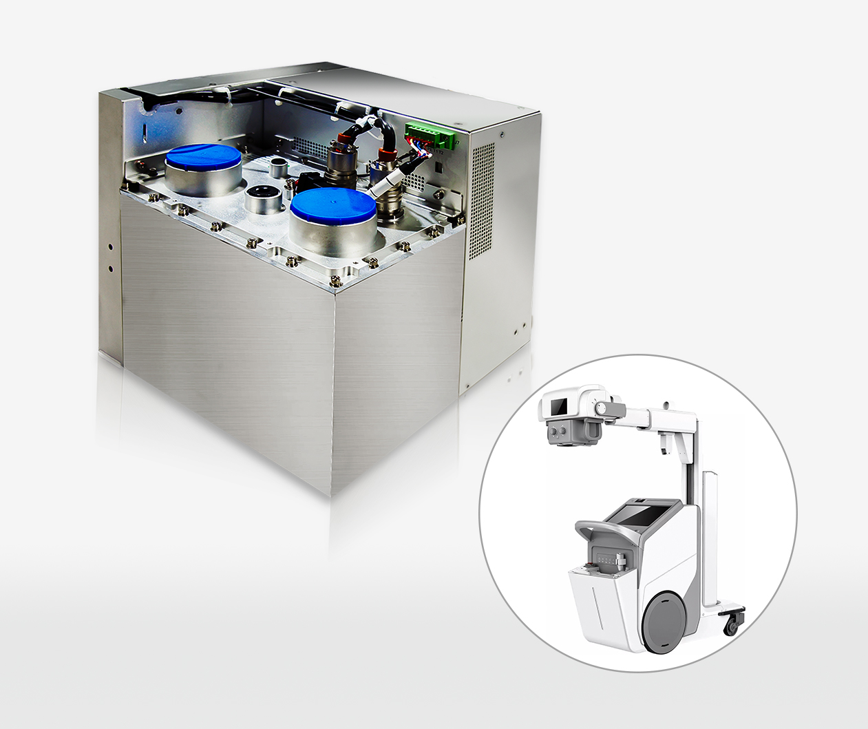 作為移動(dòng)DR的核心動(dòng)力,PSG-M專(zhuān)注于為頂尖DR廠(chǎng)商提供配套支持。其搭載于眾多知名品牌設(shè)備中,以技術(shù)創(chuàng)新破解醫(yī)療場(chǎng)景痛點(diǎn)——在ICU、急診等 “高壓一線(xiàn)”,傳統(tǒng)設(shè)備常因體積受限影響效率,而PSG-M通過(guò)MOSFET高頻逆變技術(shù)與高壓絕緣創(chuàng)新,大幅縮減油箱體積與重量;配合緊湊型結(jié)構(gòu)設(shè)計(jì),為整機(jī) “瘦身” 奠定基礎(chǔ),讓設(shè)備在狹窄空間靈活作業(yè)。